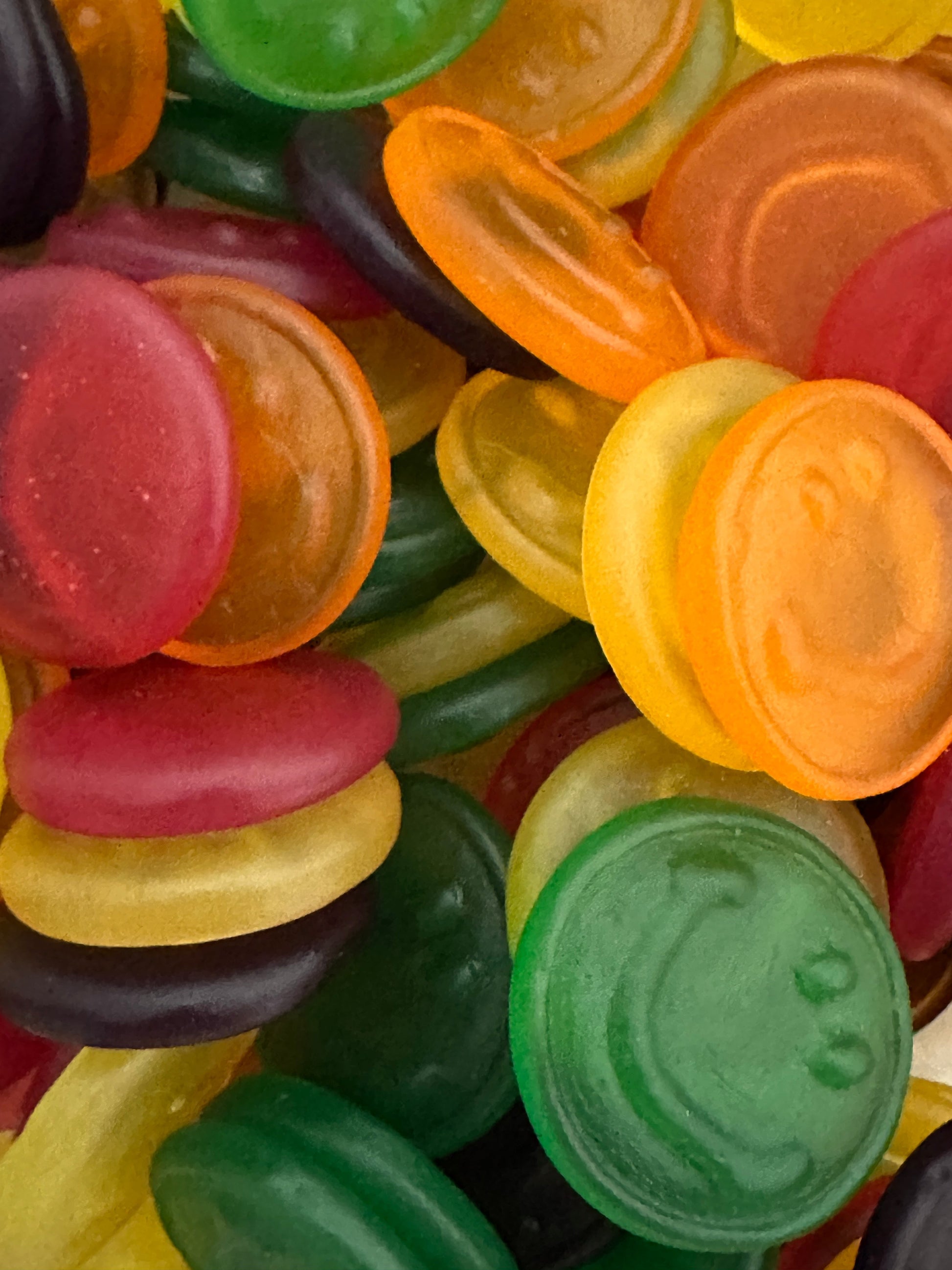 Bright, bouncy, and bursting with joy—these cheerful gummies are a colour-pop celebration of fruity fun.